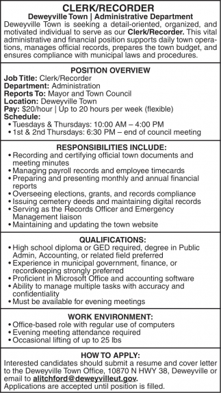 Sep 30, 2025. Town of Deweyville Administration Jobs from Cache Valley Jobs